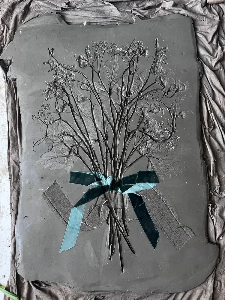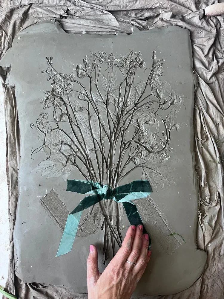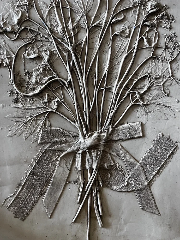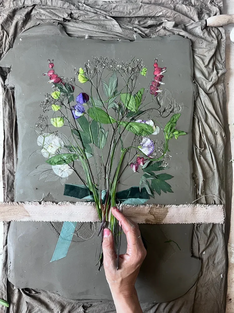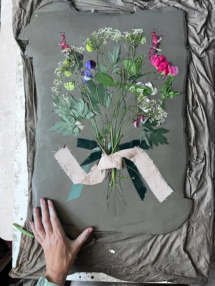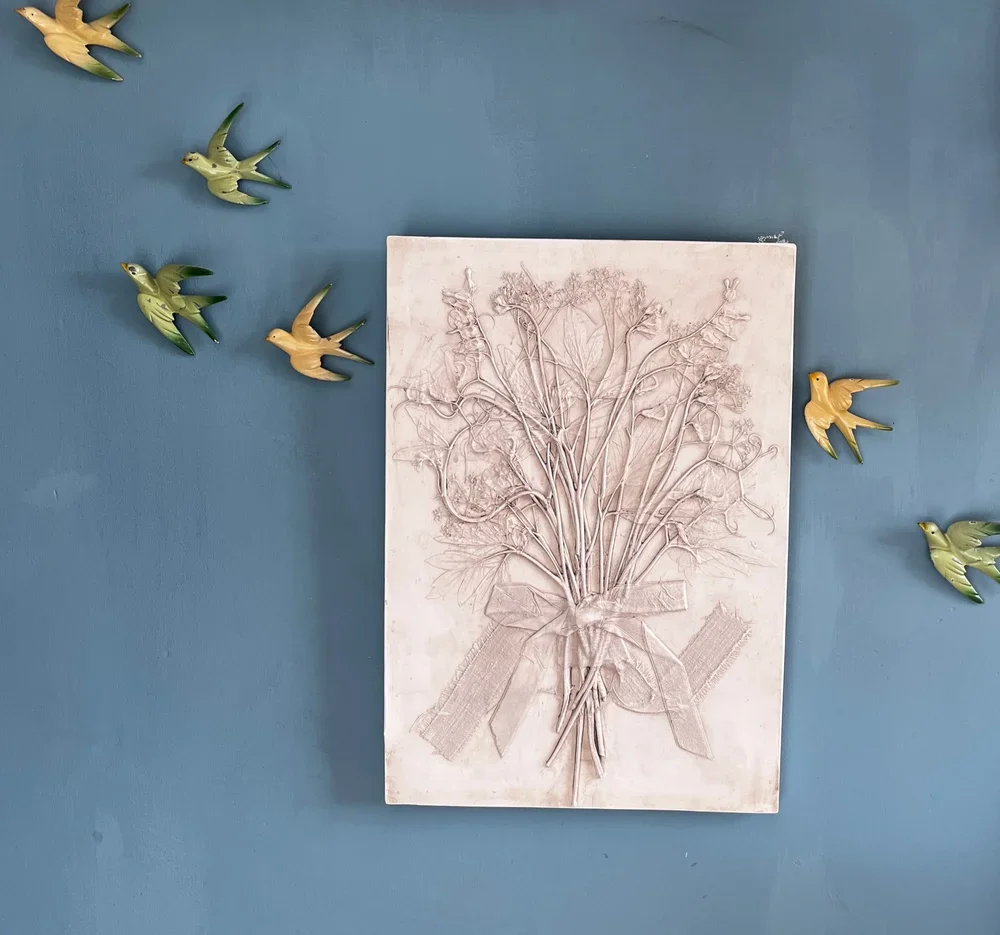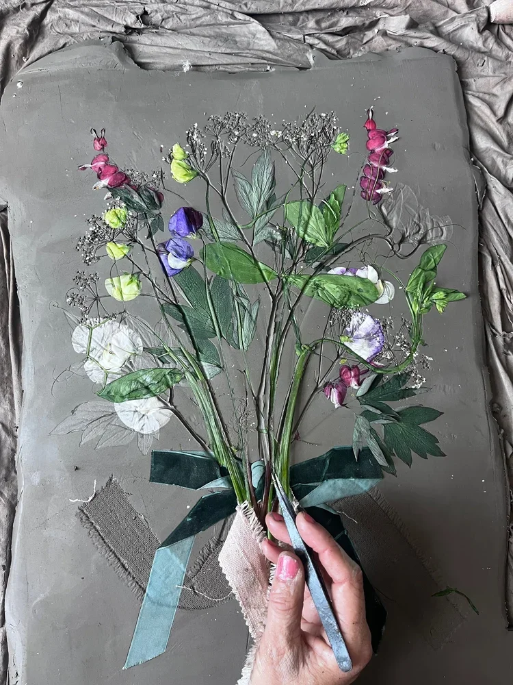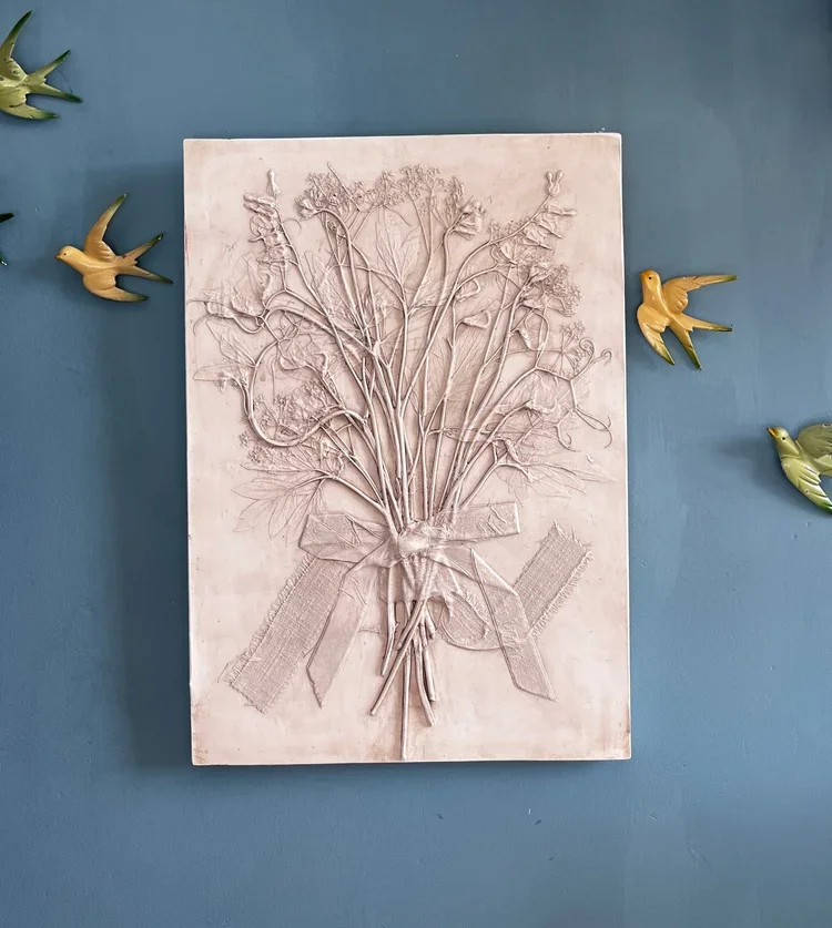 But the more whimsical, simple bouquet I made for our Edinburgh day is now preserved in plaster to remind me of both weddings. I picked a bunch of sweetpeas, bleeding hearts and cowparsely which I tied with some velvet and linen ribbons. When it came to casting this I decided to try something different and the flowers with the ribbon, in the shape and composition of the posie I held on the day. And I love it! It’s now hanging in our bedroom so I wake up every morning and it’s the first thing I see. I’m keen to make more casts in this style for my brides - watch this space….