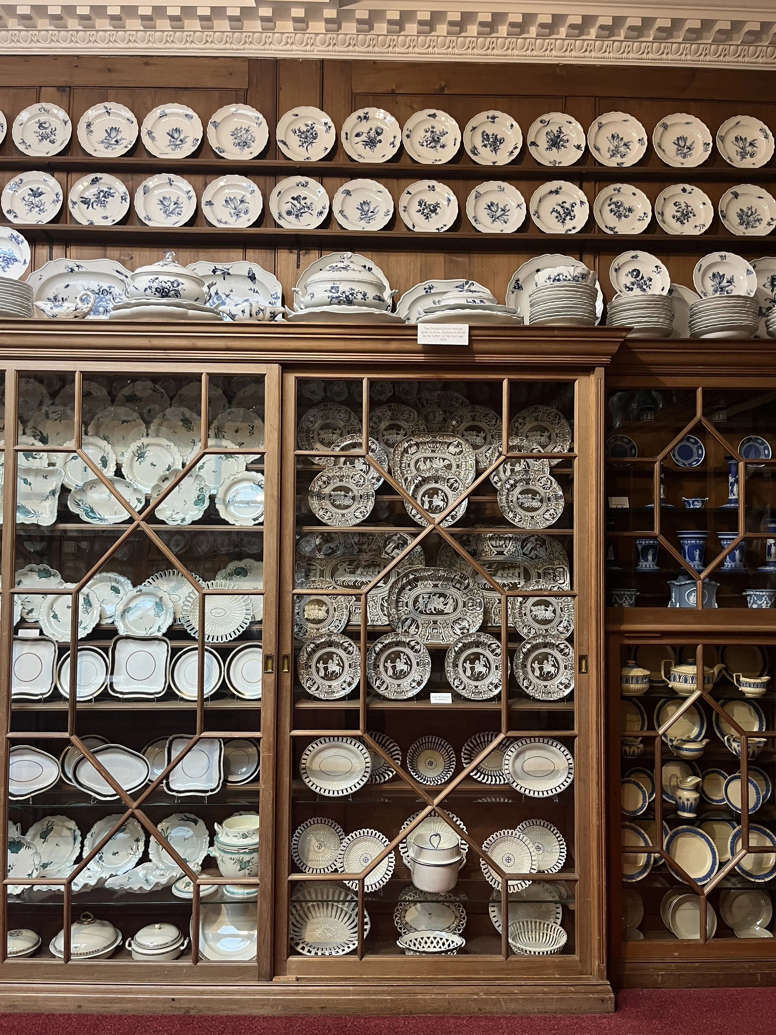 From the moment I stepped through the grand doors, I was captivated by the rich history and varied, fascinating interiors. Blair Atholl Castle has been home to 19 generations of Stewarts and Murrays of Atholl, and its story is woven through every room. The entrance hall is filled with beautifully arranged armoury, turning swords and shields used in the Battle of Culloden into elegant wall decoration. From there, you are guided through a series of increasingly remarkable rooms. I was completely absorbed by the incredible plasterwork in the Dining Room and Drawing Room, craning my neck to take in every intricate detail of the ornamental reliefs - simply fabulous.