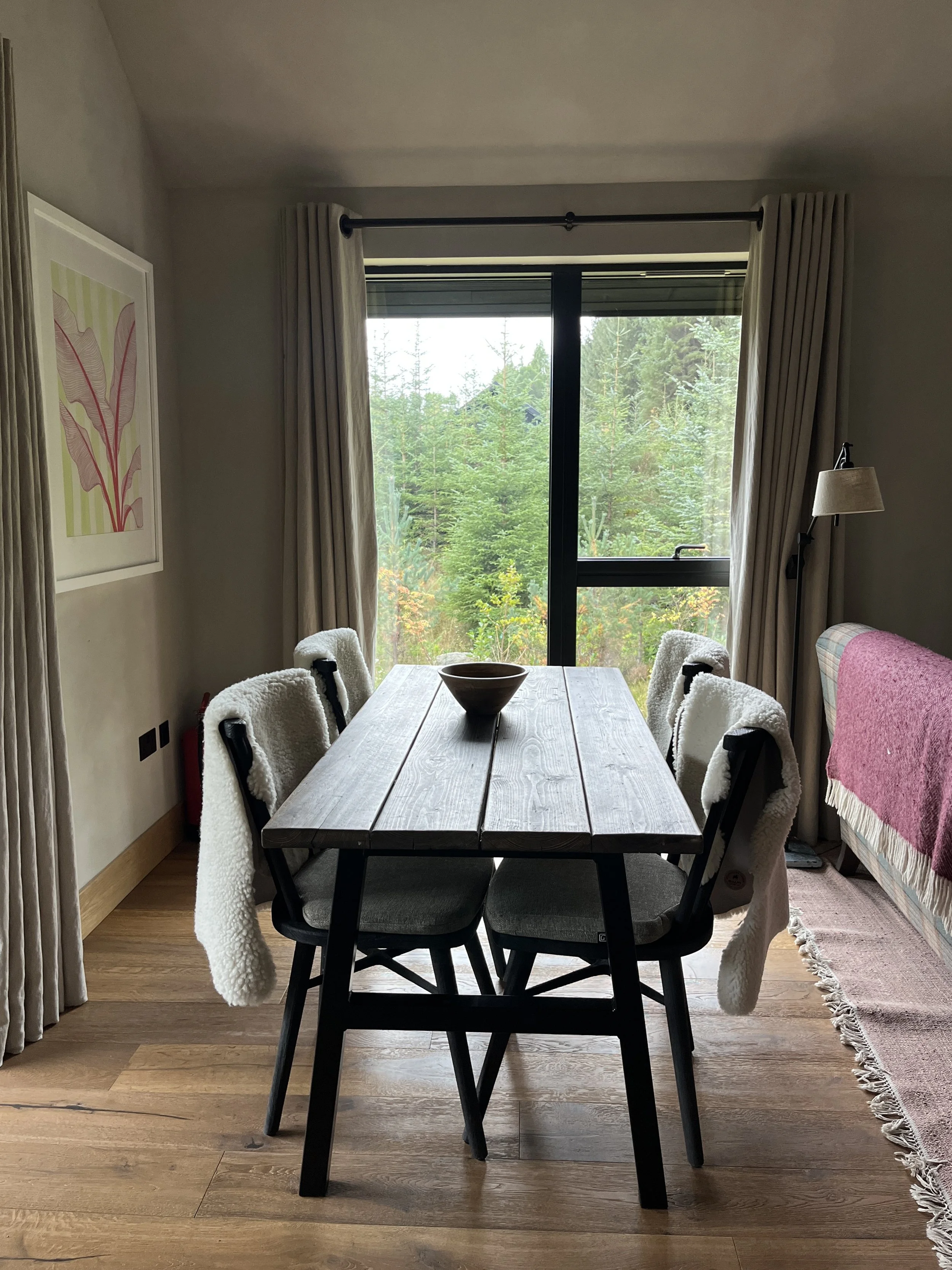 I was so grateful for the opportunity to stay at Glen Glack, heading up to Perthshire in the depths of autumn — my absolute favourite time of year. Dave and I often escape the hustle and bustle of the city and head to Dunkeld for an autumnal woodland walk, usually followed by a warm coffee and delicious pastry from Aran, or a glass of wine by the fire in the cosy Taybank Bar. So having the chance to spend a few days immersed in the woodlands around Dunkeld, from the beautiful setting of Hazel - one of the five stunning cabins at Glen Glack - was a true delight.