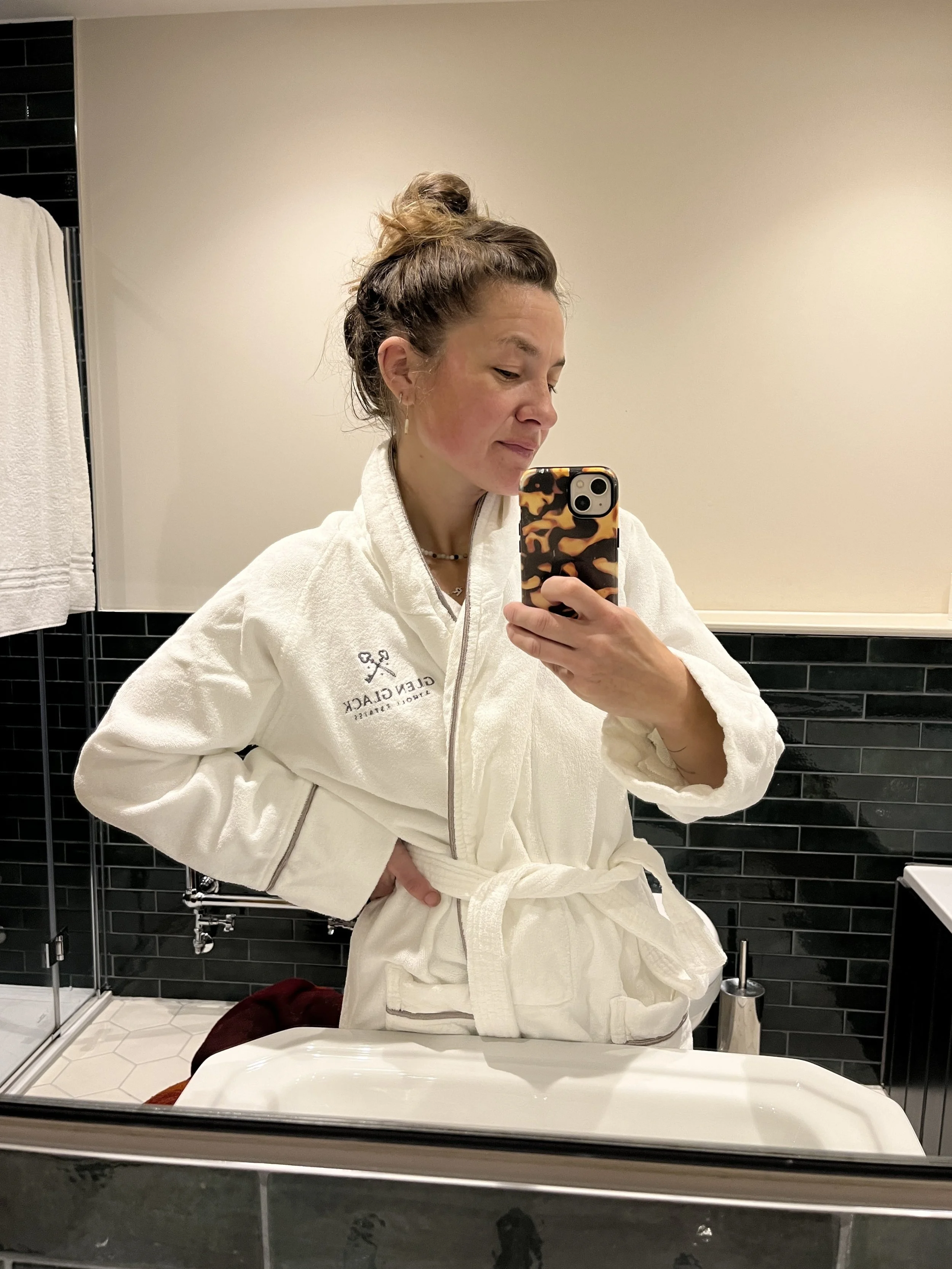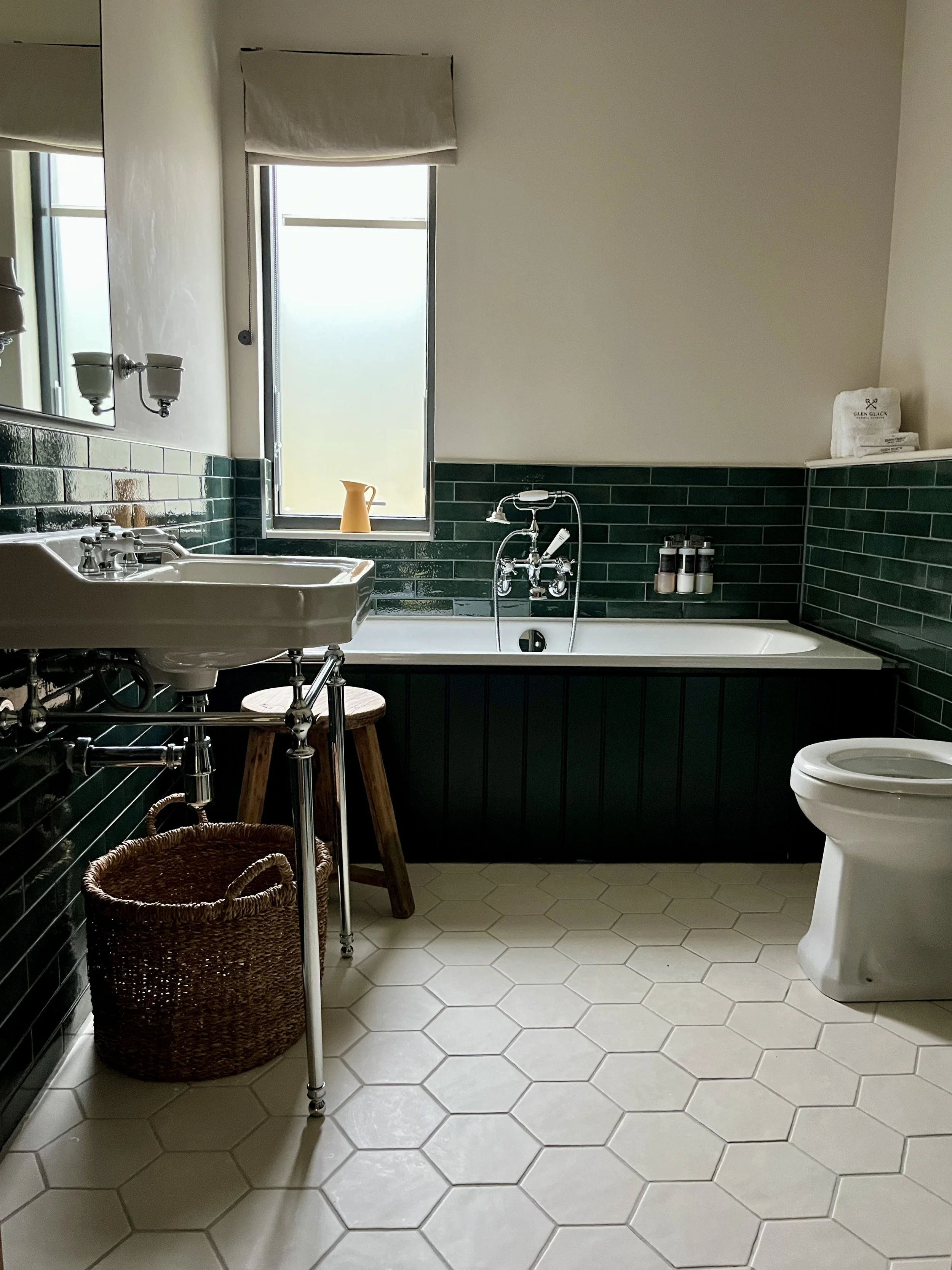 The sleek, tiled bathroom — with modern subway tiles, underfloor heating, and classic fixtures — was a true inspiration as we venture into our own house renovation. As a self-confessed bath-aholic, you can be sure I spent my evenings soaking and warming up after a day of casting outside, wrapped in the luxurious, cosy dressing robes provided