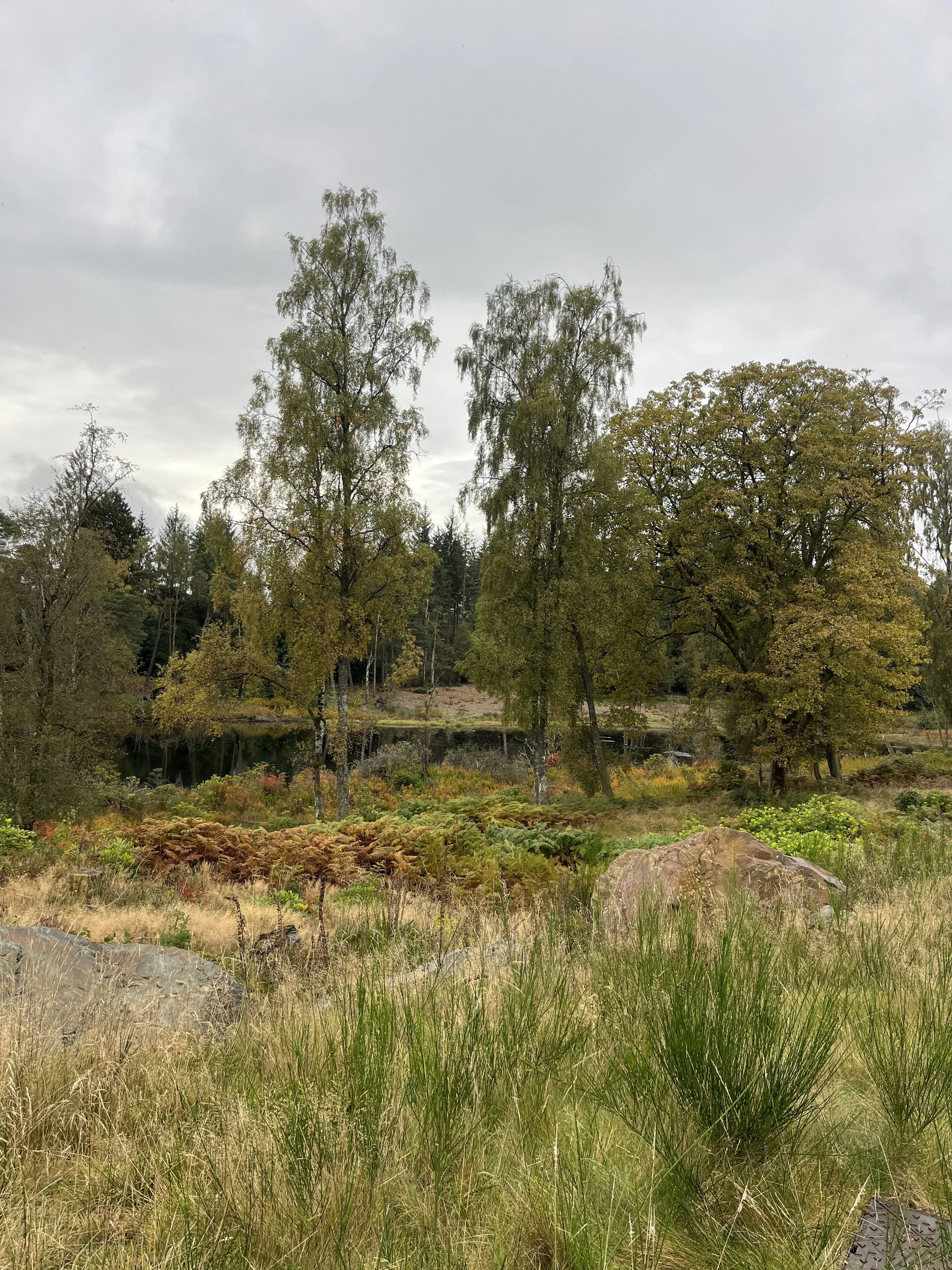 Autumn is one of my favourite seasons in Scotland, and there is nowhere better to witness the turning of the leaves into a sea of fiery oranges, deep reds and rusty browns than Perthshire. I drove up on a gloomy, properly dreich day, with mist and rain hanging low in the sky and blanketing the landscape in a thick grey fog. While it’s not my favourite weather, it made the bright autumn woodland colours glow and sing out against the muted backdrop. The trees were alive with fiery leaves and the woodland floor was scattered with beautiful mushrooms and toadstools, their colours luminous against the damp earth. It felt like stepping into a quieter, slower world - the perfect place to immerse myself for a few days and draw inspiration from the autumn landscape.